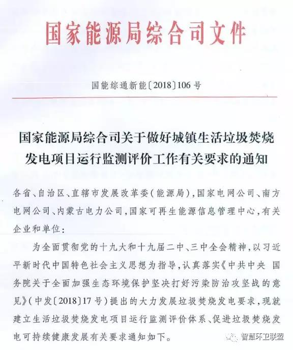 通知】國家能源局綜合司關于做好城鎮生活垃圾焚燒發電項目運行監測評價工作有關要求的通知