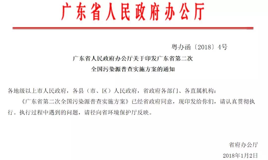 廣東省人民政府辦公廳關于印發廣東省第二次全國污染源普查實施方案的通知