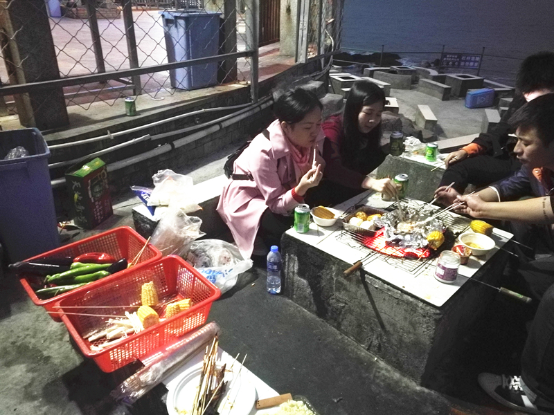 世間萬物,唯有美食與愛不可辜負。大家都在大快朵頤,不知不覺,夜幕已經(jīng)降臨啦,吹著海風(fēng),吃著燒烤,好不愜意,享受著悠閑的晚餐時光。