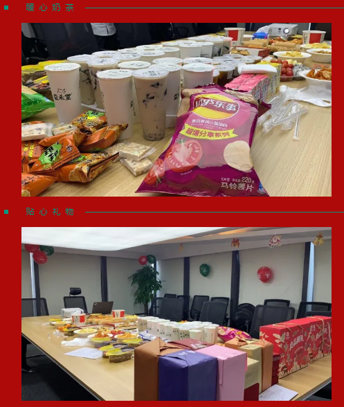 聽著圣誕歌,吃著美食,同事間聊聊天,氣氛溫馨而融洽。
