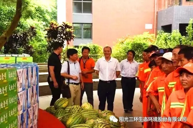 “大家辛苦了,夏天天氣炎熱 ,室外工作非常辛苦,我代表街道辦來(lái)看望大家,希望大家在工作中注意安全、保重身體。”