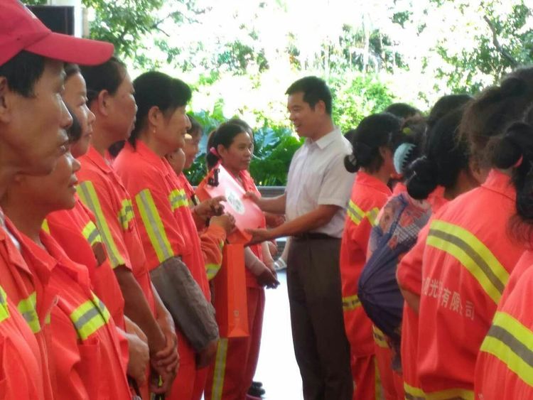 此次活動,得到了招商街道辦的大力支持,黃大隊長、曲科長、紀大隊長親自為公司環(huán)衛(wèi)工人送上降暑藥油、加多寶涼茶、綠豆、板藍根等慰問品,員工們真心的感謝政府的關(guān)心。