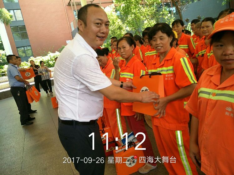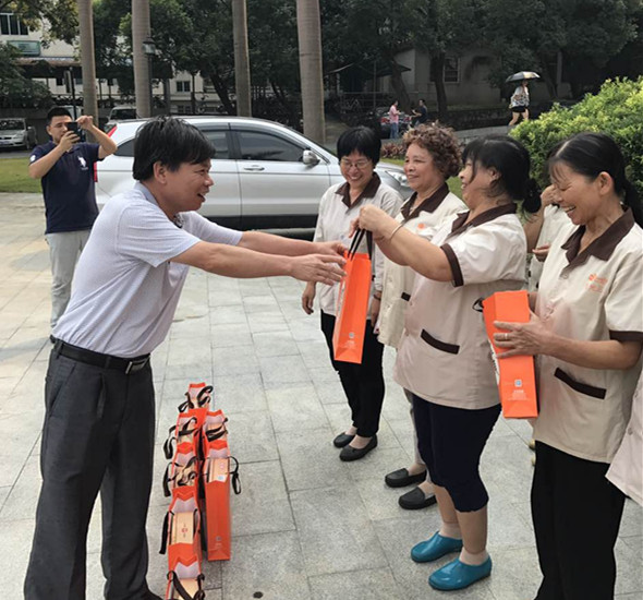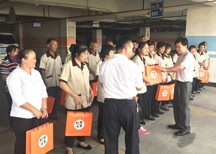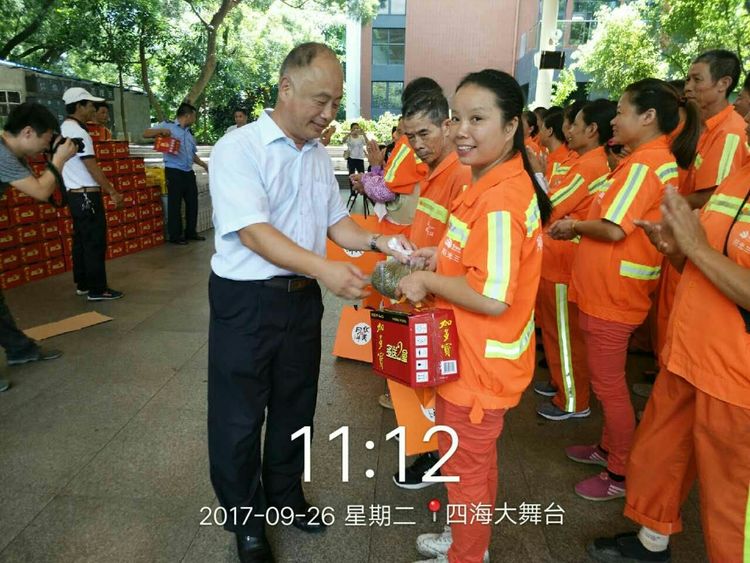 公司副總裁陳照宣、道路清潔中心羅副總親自驅(qū)車百余里,為遠在廣州項目部的員工送上公司的關(guān)愛和祝福。