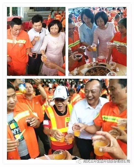 今天,我們載歌載舞,歡聚一堂,共舉祝福的美酒,祝福環衛工人們節日快樂,祝愿公司的環衛事業明天會更好!