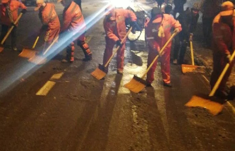 目前,除雪工作依然緊張,西安項目部全體環衛工人“上陣作戰”,全力以赴,清雪除冰保暢通,保障市民安全出行。