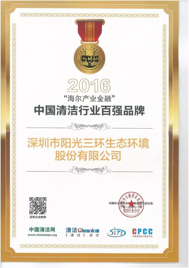 “中國清潔環衛百強”品牌這個稱號,是對陽光三環人始終秉持誠信、敬業、優質、創新企業精神的認可;是對陽光三環人擁有更強社會責任感的要求;是推動“陽光事業”發展的情景動力
