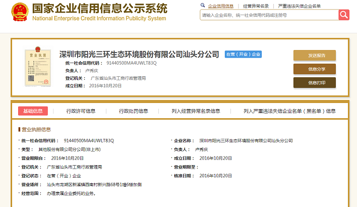 2、汕頭市陽光三環清潔有限公司