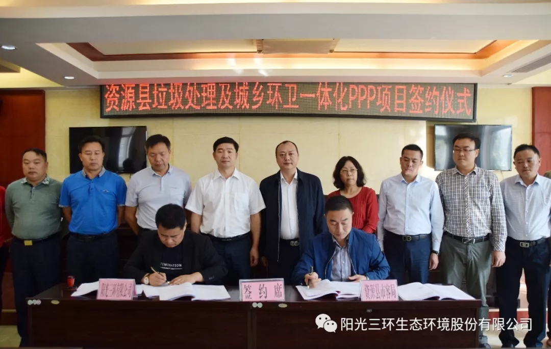 資源縣市容管理局與我司全資子公司廣西資源陽光三環生態環境有限公司就資源縣垃圾處理及城鄉環衛一體化PPP項目正式簽約。