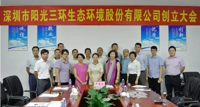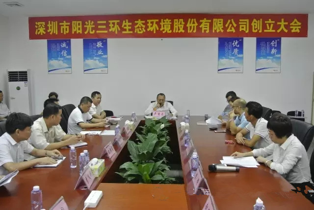 2016年8月18日上午,深圳市陽光三環生態環境股份有限公司創立大會在公司召開。股份公司董事、監事候選人、中介機構代表和股份公司中層以上管理人員出席會議。