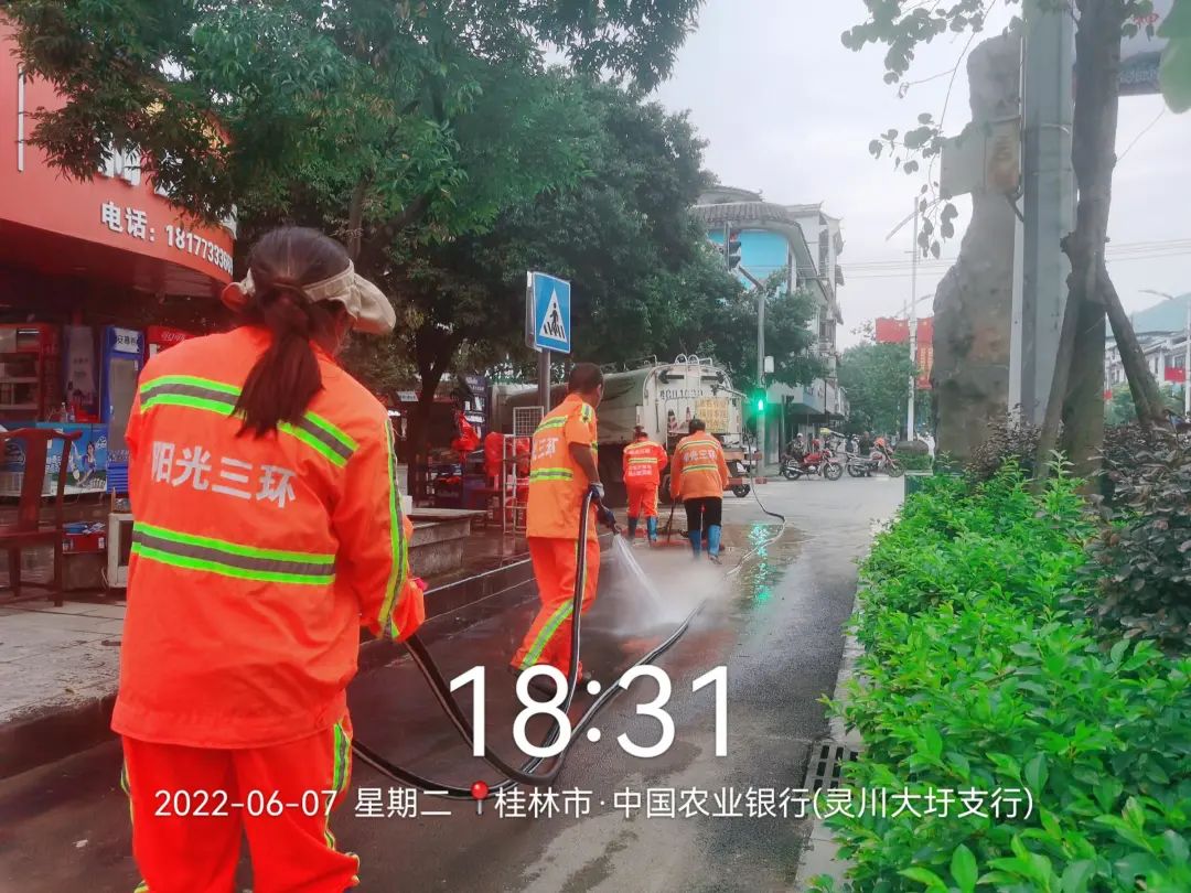 截止至6月8日,廣西陽光三環通過人工清理+機械清洗的工作方式,對大圩鎮主要機動車道、非機動車道和人行道的淤泥和道路兩側垃圾桶進行全面沖洗作業,快速恢復道路原貌,保障行人、車輛順利通行。陽光三環環衛人始終發揮能動性、團結力、吃苦耐勞精神,為美麗靈川貢獻一份力量!