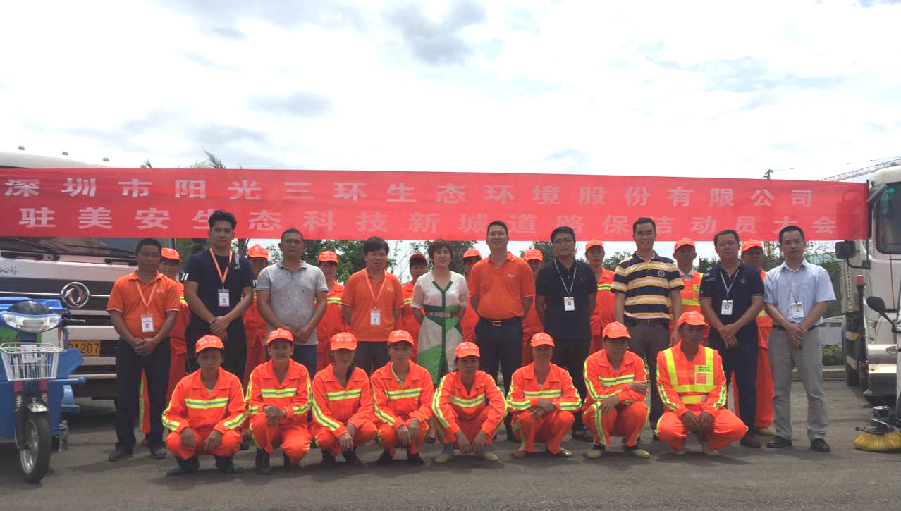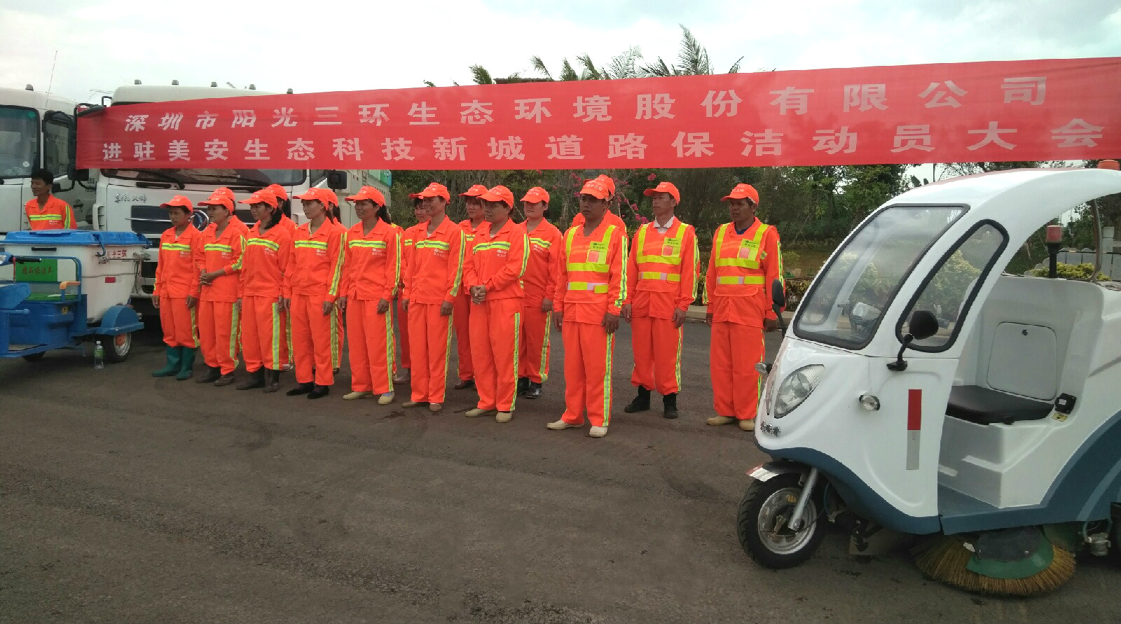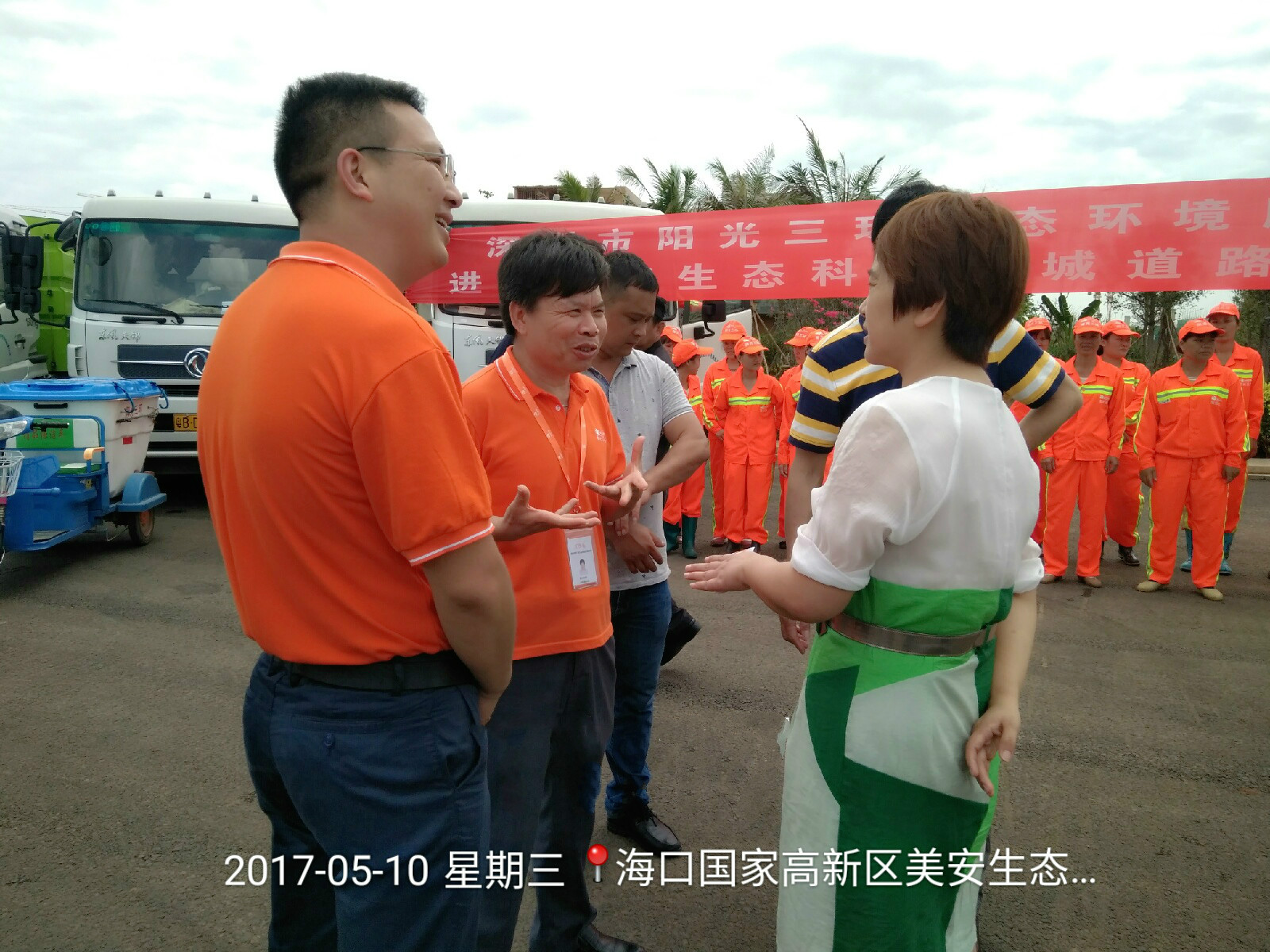 2017年5月10日,夏樹蒼翠,鳥語蟬鳴,我公司正式進駐海口美安生態科技新城環衛項目。美安生態科技新城管理中心吳主任、鄭經理、我公司副總裁陳照宣攜項目人員出席了此次動員大會。