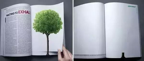 廣告詞:With Every Turn of A Page, Deforestation Continues. 每翻一頁(yè),就有一棵樹從地球上消失。
