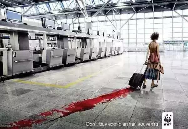 廣告詞:Don't Buy Exotic Animal Souvenirs. 別再購(gòu)買稀有動(dòng)物紀(jì)念品。