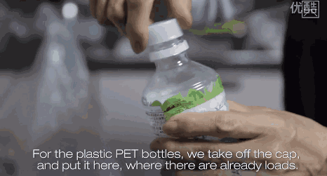 礦泉水瓶蓋、貼紙、瓶身分開歸類
