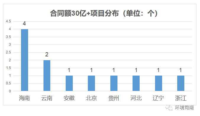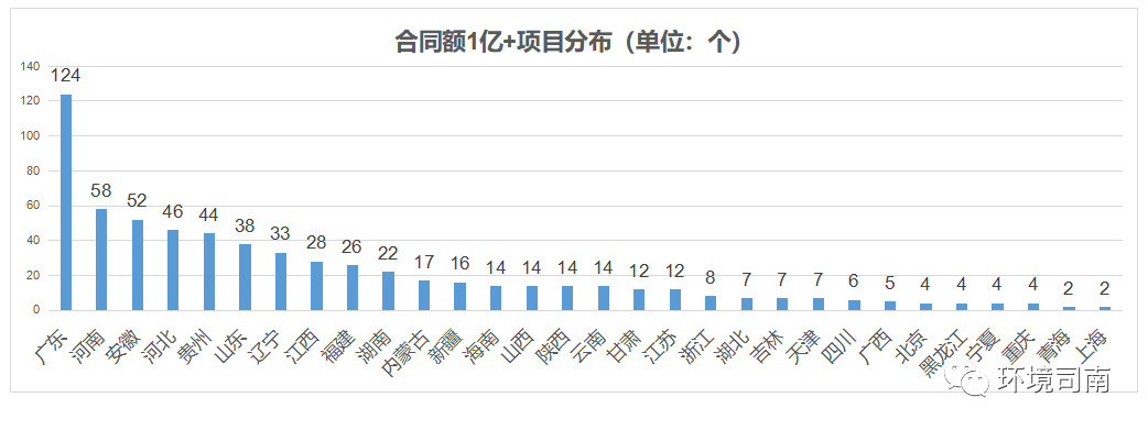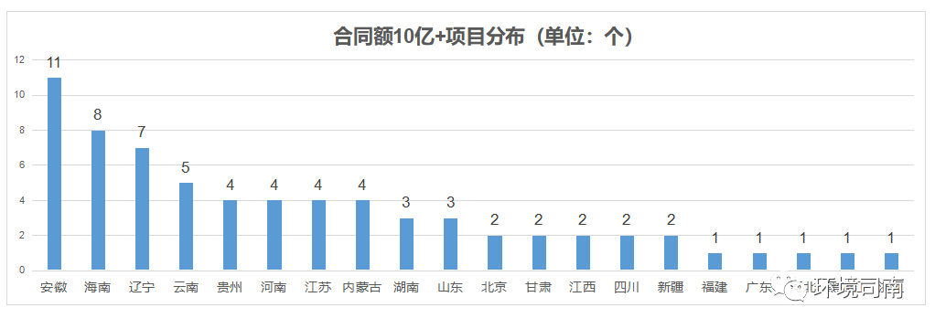 環衛市場化以來,全國累計開標合同額超過1億元的項目/標段總數為644個,其中合同額30億元以上項目12個,合同額20億元以上項目24個,合同額10億元以上項目68個。