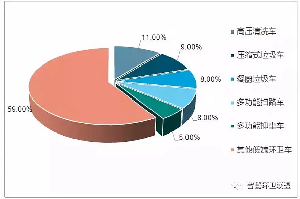 2016國內(nèi)各類環(huán)衛(wèi)車產(chǎn)量占比