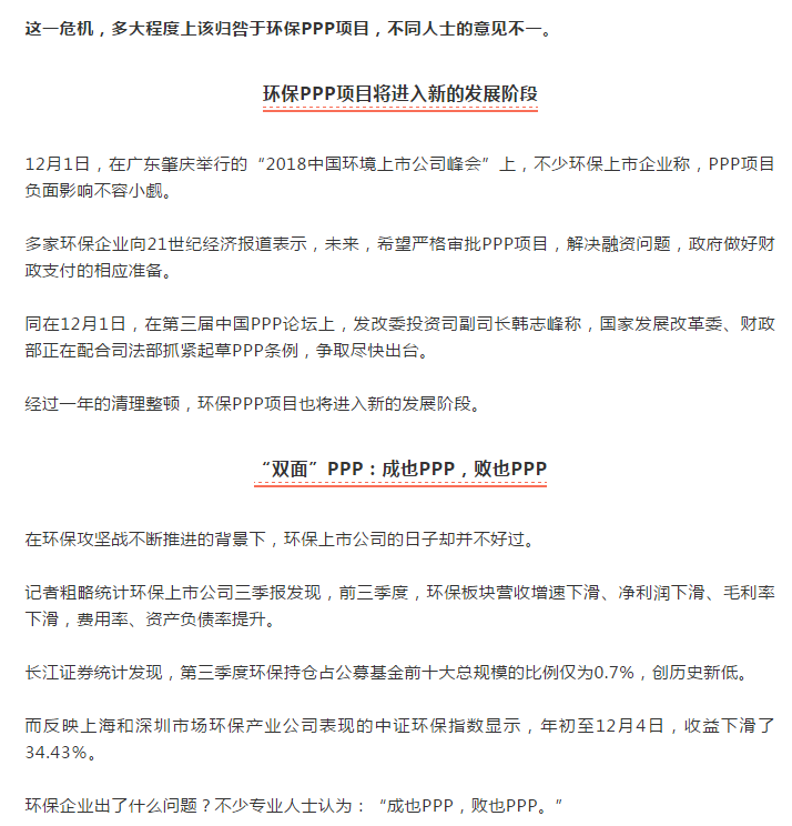 聚焦丨繃不住了,拖累上市公司連續"爆雷"!2018年環保PPP的危機與轉機